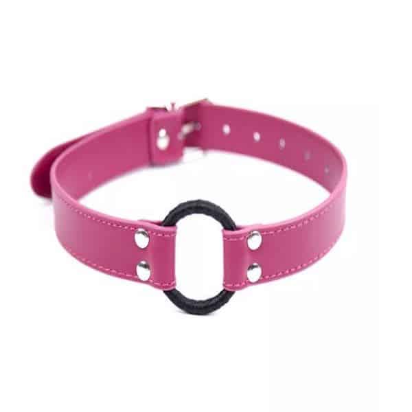 Metal Ring Gag Black With Pink Strap 3.6cm Diameter