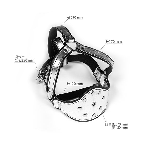 Your lover whom is with the Compliance Kit can learn the meaning of submission in no time ! This kit is the perfect tool to teach your lover how to please and serve you,allowing you to customize your role-playing for a variety of scenarios. For example, snap the muzzle onto your partner and make sure that they can't do much with their mouth. The muzzle is designed with a perforated front (to allow for breathing) and covers the entire mouth and jaw。There are snaps on the back so you can easily adjust the size for a secure fit. With the above features,you can control when and how often your lover speaks, giving you total authority to ask her or him do as your request to please you and explore your deepest Fetish Fantasies! Specification : Material:PU+Iron+Copper Color:black