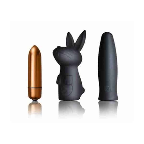 This kit features a powerful pleasure bullet with two stimulating sleeves, and is perfect for a steamy solo experience or a stimulating shared session. The bullet vibe has a tapered tip for precise sensation, and stimulates your sweet spots with precision. 7 Sinful settings edge you on to orgasm on full power – or at a slower, gentler pace. The Rascal Rabbit sleeve has stimulating bunny ears for direct clitoral sensation. The Pleasure Me sleeve is simple but stimulating and the supple body safe silicone is pure bliss on your bare skin. The bullet itself is easy to handle in the heat of the moment, and the petite size makes it great for spontaneous play, travel and discreet fun whenever you want it. This trio is 100% waterproof for wild adventures outside of the bedroom, too.