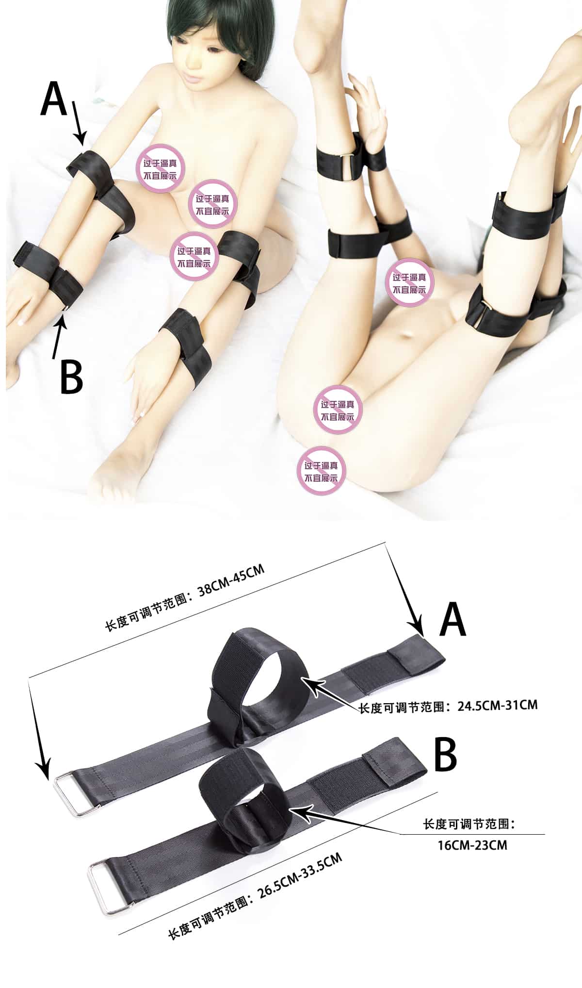 Knee Calf Elbow Wrist Cuffs Restraint System Black