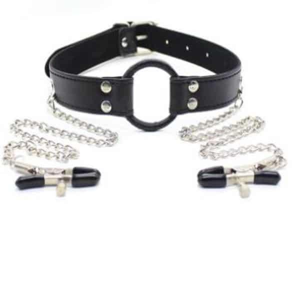 Adjustable Ring Gag With Nipple Clamps