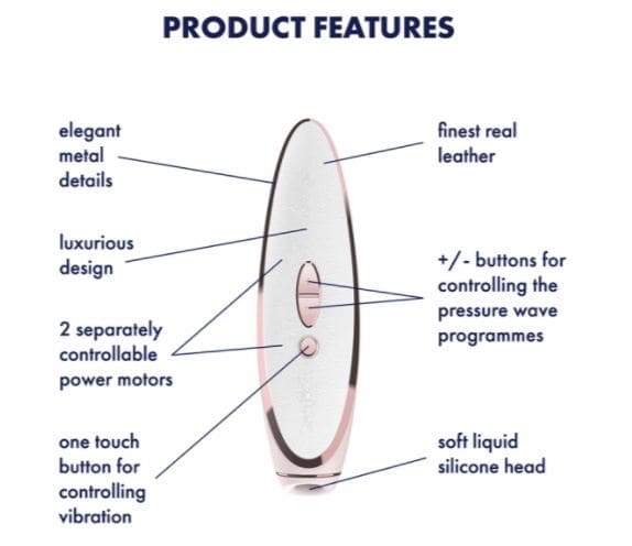 11 pressure wave intensities and 10 vibration programmes offer variety for ultimate pleasure |