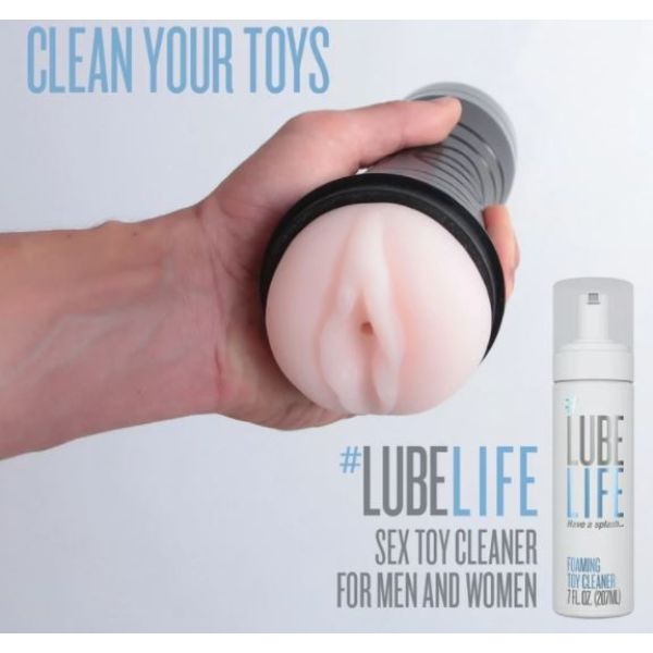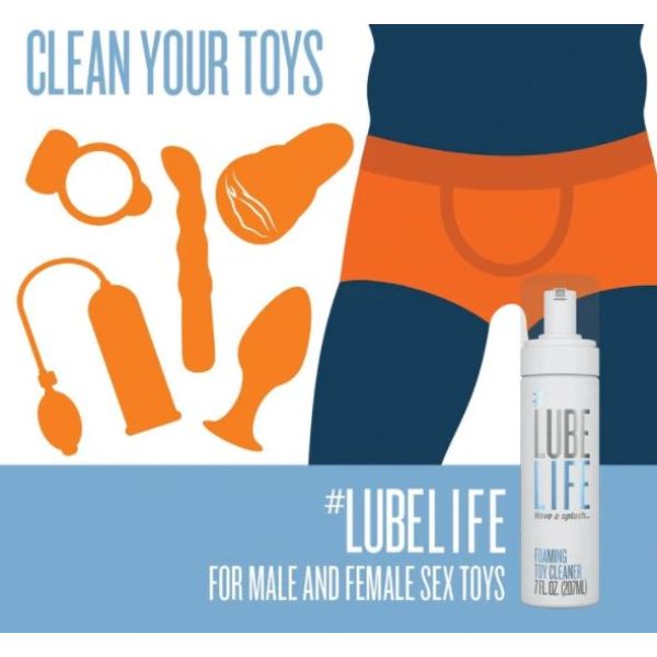 #LubeLife foaming toy cleaner is made to clean any toy. It works great with everything from dildos, anal beads, glass toys to male masturbators. Let us do the work, keep your toys clean and pretty, so you can get dirty without worry. Simply apply the foam to your toy for 60 seconds, and rinse with water. Good as new!