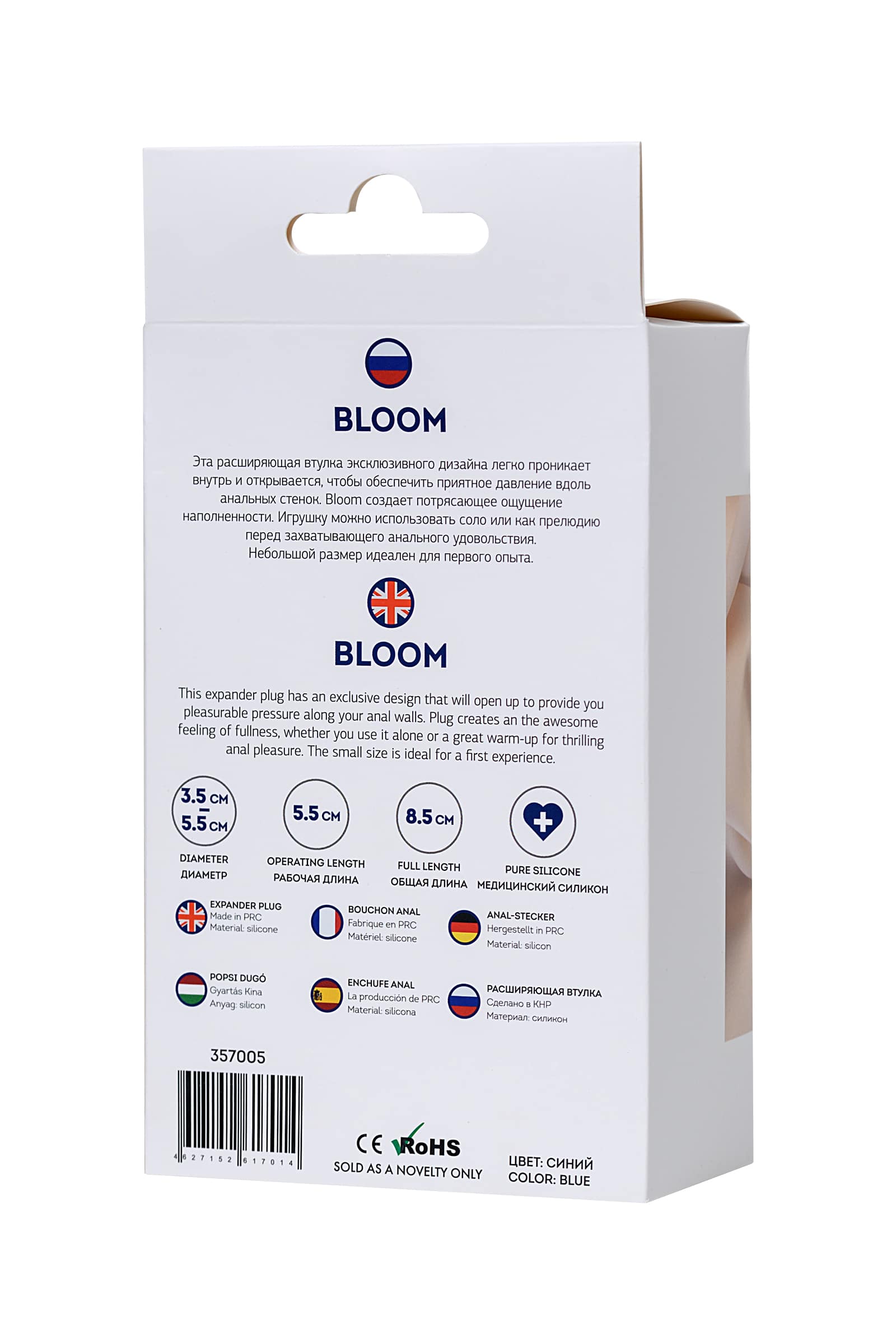 This expandable plug has an exclusive design that will easily penetrates and opens. COLOUR: blue. SIZE: 9 cm. DIAMETER: 6.5 cm. MATERIAL: Silicone