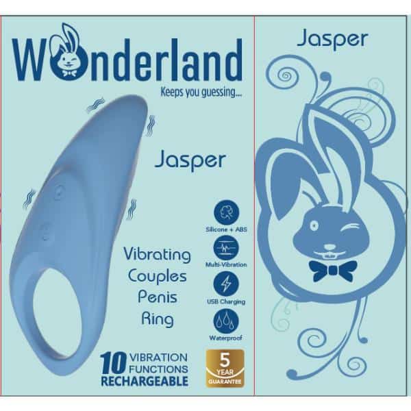 Perfect for intense stimulation and indulgent pleasure, Wonderland's sultry Jasper Vibrating Couples Penis Ring, is designed to elevate your pleasure and send you soaring to new peaks of satisfaction. Pale blue in colour, its ergonomic shape and grip ensures a perfect fit and is easily recharged with the USB cable, providing uninterrupted bliss for whenever desire calls.