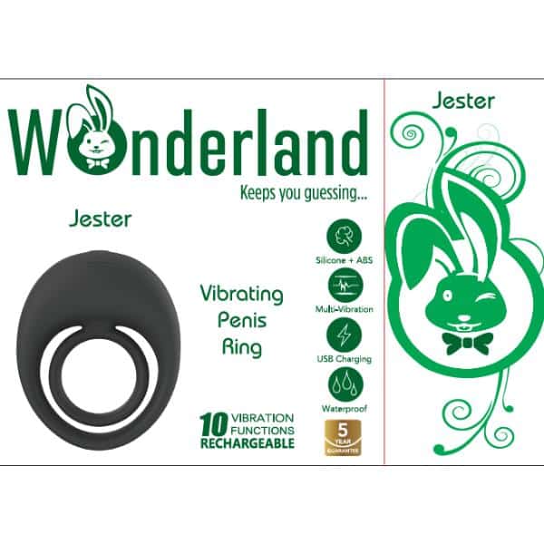 For men, relish in amplified sensitivity and endurance, culminating in an explosive release. And for women, revel in your partner's newfound girth, as the hands-free vibrations push you to the brink of ecstasy. Whether in the bedroom, bath, or poolside, luxuriate in up to 1.5 hours of waterproof bliss with Wonderland’s Jester Vibrating Penis Ring.
