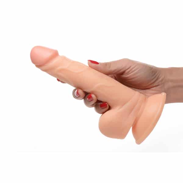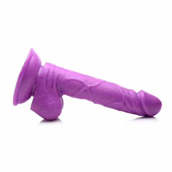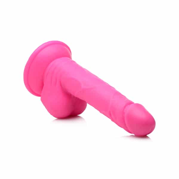 6.5" Dildo with Balls This poppin colorful dildo is ready to be popped inside for your pleasure! Its veiny shaft and realistic balls are perfect for fantasy play! The suction cup base allows you to enjoy this toy hands-free by placing it firmly on any flat surface and riding it to ecstasy!